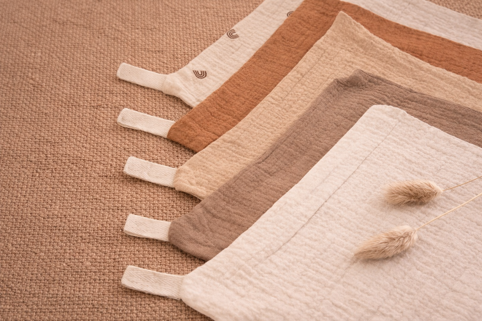 Débarbouillettes bébé en mousseline - Lot de 5 - Tons naturels Conçues double face en mousseline fine, elles glissent avec une douceur incomparable, absorbant l'eau et la crème tout en respectant...